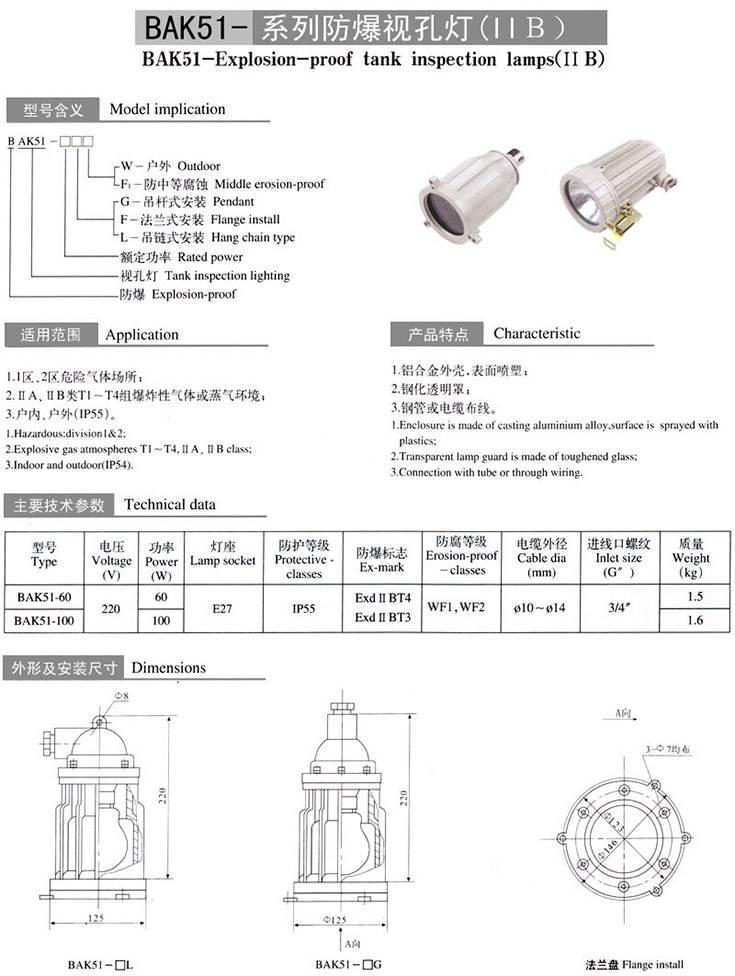 適用范圍 1:1區(qū)2區(qū)危險(xiǎn)場(chǎng)所或20區(qū)。21區(qū)危險(xiǎn)場(chǎng)所。 2:IIA,IIB,IIC爆炸性氣體環(huán)境或可燃粉塵環(huán)境。 3:戶內(nèi)。戶外(IP54,IP65). 4:溫度組別,T1~T4/T5,T6; 5:適用于石油,化工,航天,紡織,